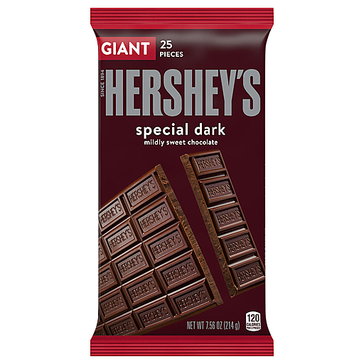 It's all in the name! This HERSHEY'S SPECIAL DARK chocolate candy bar is made from delectable, rich dark chocolate that's been a classic for decades. Each HERSHEY'S SPECIAL DARK chocolate bar makes life a little more delicious. Whether you enjoy this tasty giant size candy bar alone or shared with loved ones, one thing you can count on is experiencing the same great taste you know and love. Remember to keep a few bars on hand for guests, and store some in your pantry for convenient snacking when the mood strikes. Host a fun social gathering with yummy treats dipped in HERSHEY'S SPECIAL DARK chocolate. Or for those really long road trips, break off a piece when you need a mildly sweet pick me up! This giant candy bar is the perfect treat for countless special and everyday occasions. They can be used to stuff Christmas stockings, Halloween trick-or-treat bags, Easter baskets and Valentine's Day party favors. You can also leave some in the break room for your co-workers to enjoy. Another way we like to use this candy bar is by revamping your favorite homemade recipes. Use this sweet treat on top of freshly baked cakes, cookies and cupcakes. Everyone is excited when they're reaching for HERSHEY'S SPECIAL DARK candy bars, and now you can be too!