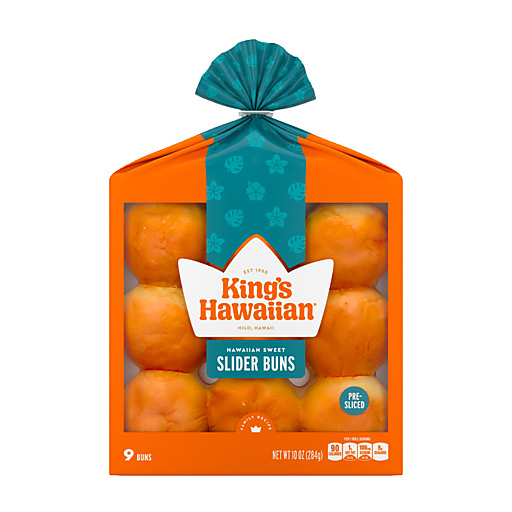 Conveniently pre-sliced, our new king's HAWAIIAN sweet slider buns are ready to rock your world. Slightly larger than our original Hawaiian sweet rolls, these sandwich buns have our original Hawaiian sweet bread recipe in a conveniently pre-sliced sandwich roll. Elevate any meal in no time with the melt-in-your-mouth texture and touch of sweetness in every bite of king's HAWAIIAN slider buns. With no high fructose corn syrup, artificial dyes or trans fat, these sweet bread buns are uniquely crowd-pleasing. Serve sweet and soft bread buns to bring together the flavors of your favorite recipes—from mini burgers and pulled pork sliders, to BBQ chicken and grilled salmon bites, there is an endless world of creative sliders ready for you to bite into. Try them for breakfast, lunch, dinner, or on their own as a sweet, heat and eat snack that's ready in a pinch. Bring friends and family together with the deliciously sweet taste of king's HAWAIIAN sweet slider hamburger buns.