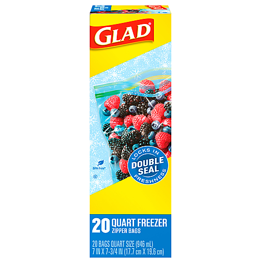 Glad Food Storage Bags prevent food from being destroyed and dried out with freezer burn. These bags have an extra tight and wide closure, which locks in freshness easily and securely. The extra thick and durable plastic help to ward off freezer burn by preventing air from reaching the food. Formulated without BPA, these Glad bags are great for storing fruit, cheese and meat in the refrigerator, and also the perfect size for storing tools, toys, travel toiletries, and many other smaller items. With the Yellow and Blue Make Green seal, you know when the bag is fully closed. Using Glad bags give an extra level of protection for your food and for your things.