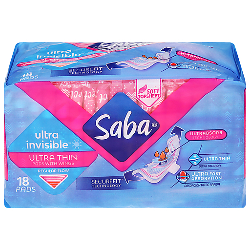 Saba Ultra Thin Regular Flow Pads With Wings 18 ea
