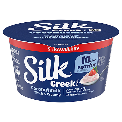 Enjoy the fruity delight of Silk Dairy Free Strawberry Greek Style Coconutmilk Yogurt Alternative, perfect for savoring on its own or topped with fresh fruit and granola. This yogurt alternative offers a rich, smooth texture that melts in your mouth, enhanced by the sweet, inviting flavor of strawberry. This plant-based option made with high-quality ingredients is free from dairy, soy, lactose, and gluten, making it a versatile choice for various dietary needs. Each serving provides a satisfying snack that is Non-GMO Project Verified. Feel Planty Good knowing that this yogurt alternative is crafted with care, using real coconutmilk to deliver a deliciously creamy experience without any artificial flavors or colors.